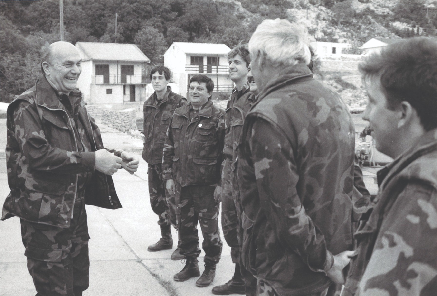 1 – General Anton Tus s pripadnicima zapovjedništva 155. brigade Hrvatske vojske u Cesarici 1992.g.