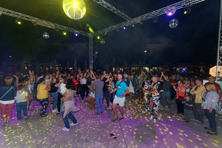 S plesne terase, već drugi dan proslave, zakoračili smo u diskoteku. Trg Stjepana Radića bio je disko na otvorenome, prepun disko kugli, gramofonskih ploča, šljokica, atraktivnih plesnih kostima, balona i sl. Poznati glazbeni hitovi poput pjesama iz filma „Groznica subotnje večeri“ ili hitova Michaela Jacksona u izvedbi Super Cover benda rasplesali su sve posjetitelje.