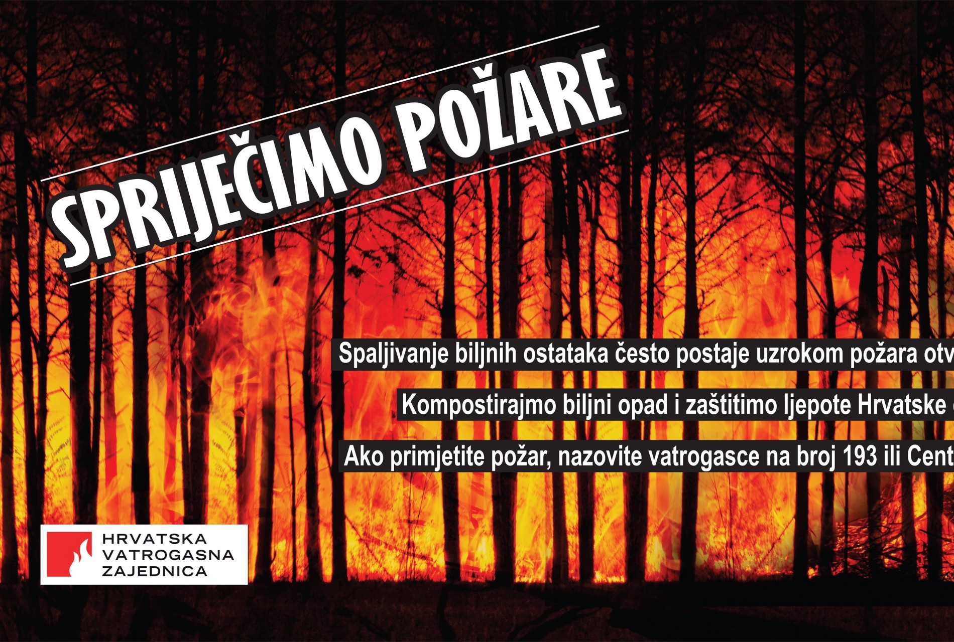 Nakon uočavanja požara odmah nazovite vatrogasce na broj 193, Centar 112 ili policiju na 192