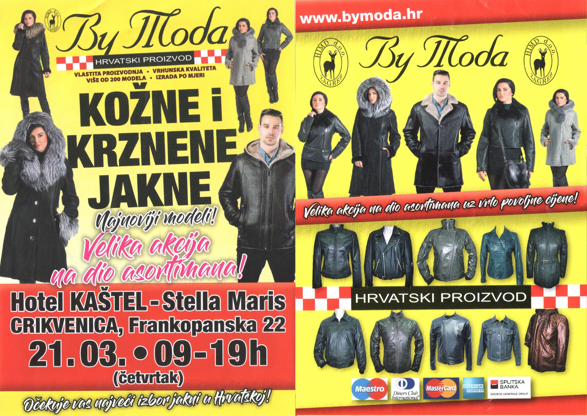 U četvrtak od 9:00 do 19:00 u “Stella Marisu” (hotel “Kaštel”) možete po povoljnim cijenama kupiti vrhunske kožne i krznene jakne domaće proizvodnje “By Mode” iz Zagreba.