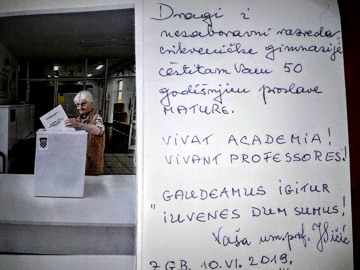 Dobili su čestitku i od svoje, još uvijek vitalne razrednice Josipe Sičić koja živi u Zagrebu:
