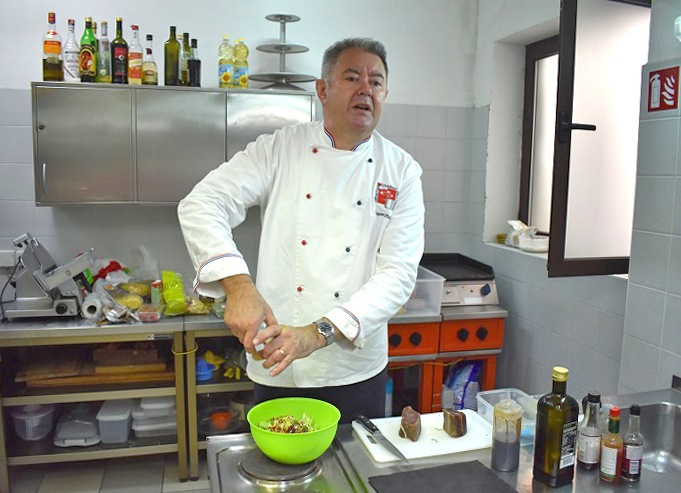 Tom prigodom, uz sudjelovanje učenika programskog usmjerenja – kuhar, demonstrirao im je pripremu dimljene skuše, špageta s inćunima, tune u sezamu i ostalih zanimljivih jela od plave ribe.
