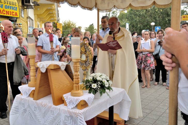 Oko tristopedest vjernika, Crikveničana i gostiju, predvođeno fra Nediljkom Jerkanom, župnikom župe sv. Antuna Padovanskog, krenulo je u procesiji ulicom Petak i Frankopanskom do Trga Stjepana Radića i u povratku ulicom Ivana Skomerže do malog mosta. Na putu procesije povorka se zaustavljala kod četiri postaje – oltara, gdje je fra Jerkan kroz evanđeoske tekstove podsjetio na ustanovljenje sakramenta Svete euharistije, te zazvao blagoslov Grada i njegovih stanovnika.