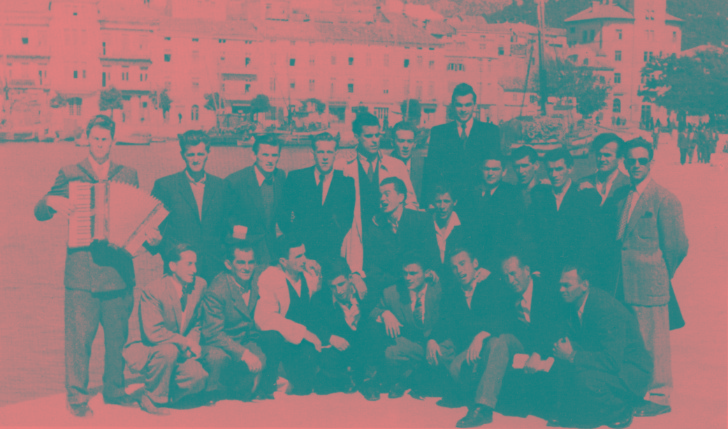 Stoje slijeva: Boco Manestar, Ivan Domijan Topić, Stipe Domijan Perišin, Rude Pilaš, Rato Blažić, Čedomir Domijan – Korda, Šime Domijan, Josip Filipović, čuče: Franjo Manestar – Ćepulo, Slavko Manestar – Učo, Bogoslav Manestar.