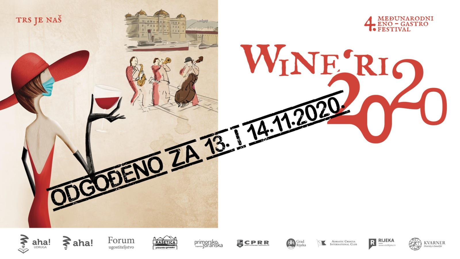 Uz najbolju namjeru i organizacijske napore za održavanjem IV. međunarodnog eno-gastro festivala “WineRi 2020” 13. i 14.3.2020., a nakon savjetovanja sa Stožerom civilne zaštite Primorsko-goranske županije te u svrhu društveno odgovornog ponašanja, zbog eksponencijalnog širenja virusa COVID-19, održavanje festivala se prolongira na 13. i 14.11.2020. u Rijeci. Žao nam je što smo u visokoj fazi organizacije prisiljeni otkazati festival, ali smatramo da je taj potez u ovom trenutku najodgovorniji. Pravovremeno ćemo vas obavijestiti o detaljima održavanja festivala u studenome.
