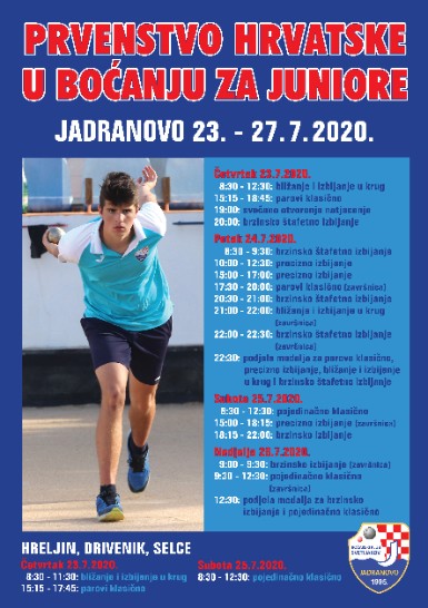 Danas na boćalištu u Jadranovu počinje pojedinačno Prvenstvo Hrvatske u boćanju za juniore, na kojem će sudjelovati tridesetak najboljih hrvatskih boćara u dobi do 18 godina.