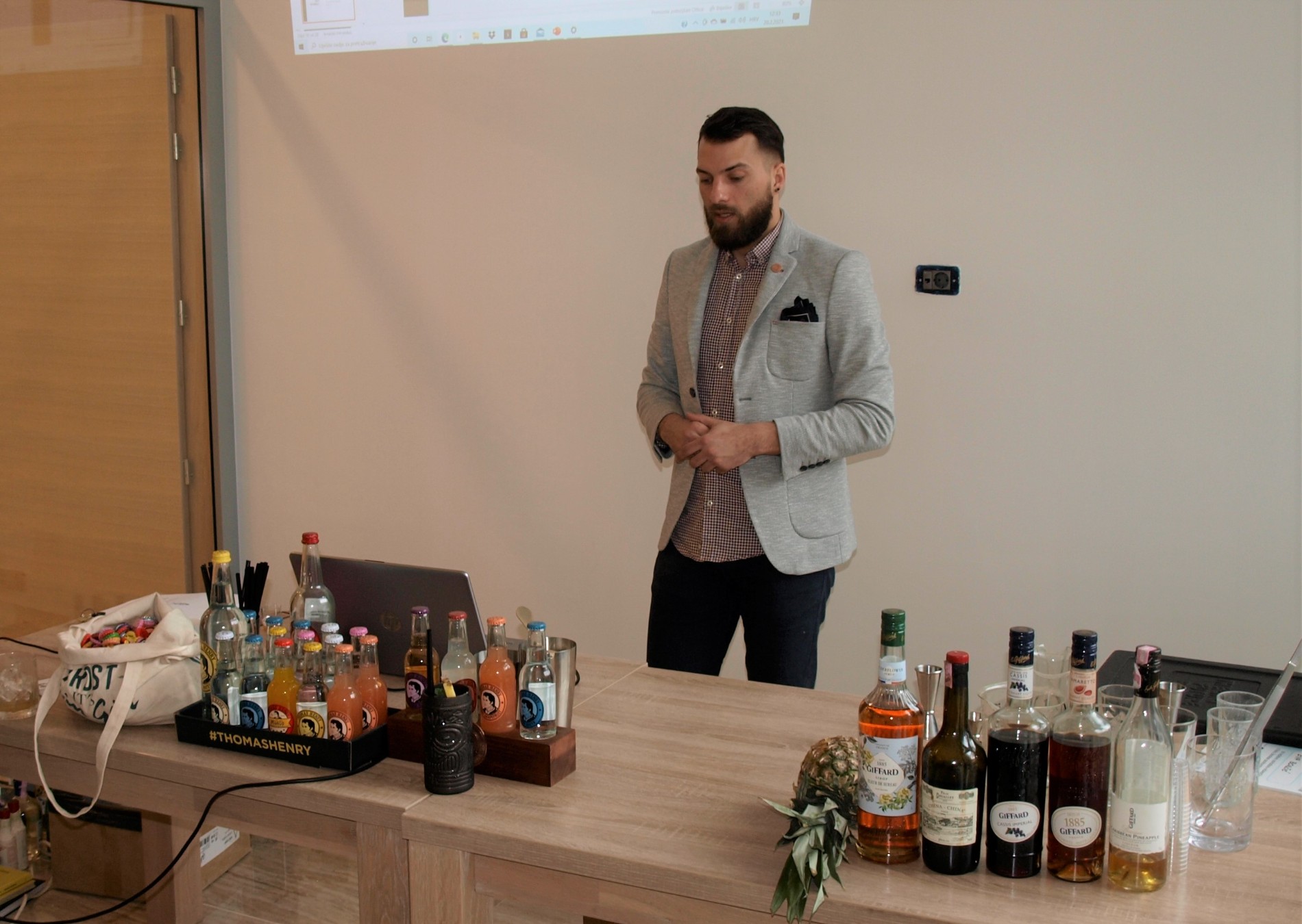 Dorijan Skoblar, brand ambassador je tvrtke G3 Spirits, jedne od najvećih uvoznika stranih brendova poput Jägermeistera, Hendricks gina, Monkey Shoulder whiskya , Thomas Henry bezalkoholnih gaziranih pića i tonika te ostalih nagrađivanih brendova. Njegove koktele možete probati u Teatro Lounge Baru u Rijeci koji uskoro najavljuje još jedan level više čime se želi istaknuti od ostalih ugostiteljskih objekata. Edukacija je ovoga puta zbog epidemioloških mjera bila ograničena na 10 polaznika.