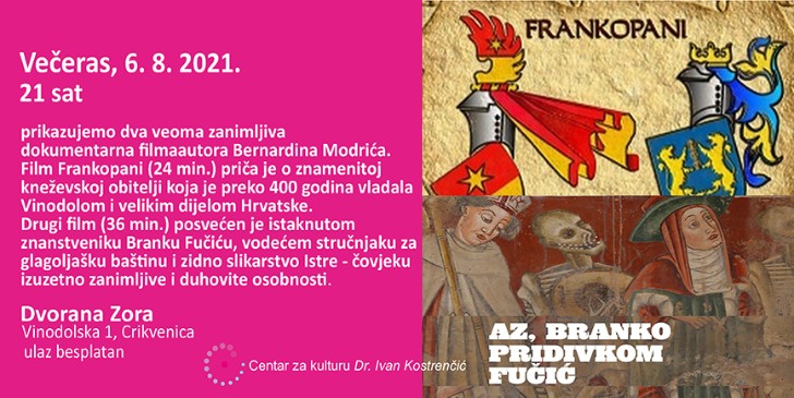 Najavljujemo dva dokumentarna filma autora Bernardina Modrića u Dvorani Zora u Crikvenici.