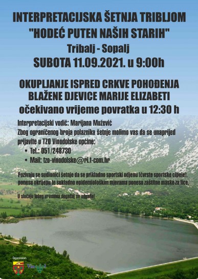 Turistička zajednica Vinodolske općine poziva vas da bolje upoznate Tribalj kroz interpretacijsku šetnju “Hodeć puten naših starih”, usponom na Sopalj u subotu 11. rujna s polaskom ispred tribaljske crkve u 9:00 sati.