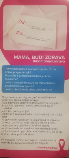 Učenici OŠ Vladimira Nazora razgovarali su o ovoj temi na satu razrednika te su dobili letak koji su uručili svojim majkama i time ih potakli da promisle o važnosti redovitih kontrolnih pregleda i općenito veće brige o zdravlju. Ružičasti listopad obilježen je i ružičastim balonima.
