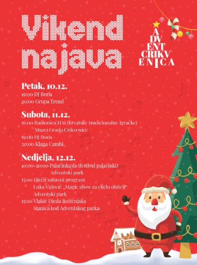 Pred vratima je i treći adventski vikend prepun događanja za sve uzraste – glazbeni, zabavni, dječji, gastro program.