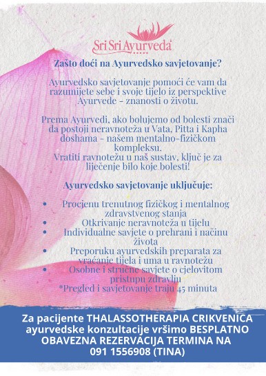 U “Thalassotherapiji” Crikvenica će se 17. i 18. veljače 2022. provoditi ayurvedske konzultacije – pulsna dijagnostika. Usluge će pružati izvorna ayurvedska savjetnica iz Indije dr. Chitrangana Chauhan.