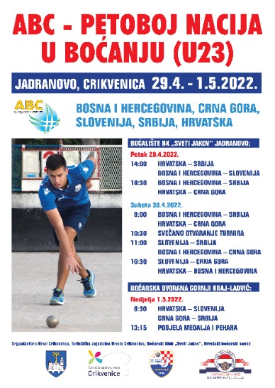 U organizaciji Grada Crikvenice, Turističke zajednice Grada Crikvenice, Boćarskog kluba “Sveti Jakov” i Hrvatskog boćarskog saveza ovoga će se vikenda na boćalištu u Jadranovu i boćarskoj dvorani u Ladviću održati međunarodni ABC Petoboj nacija u boćanju za mlađe seniore (U23).