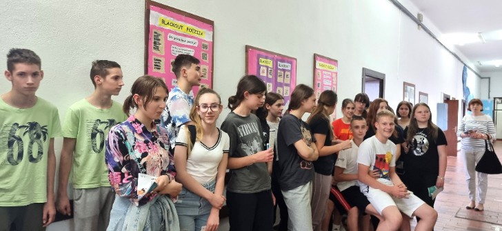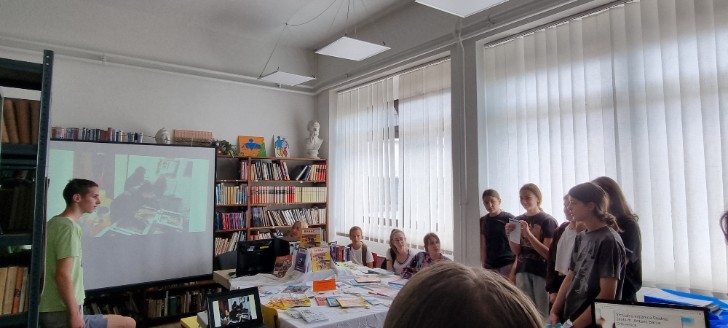 Učenice Lucija Žnidarec, Antonija Milošević (2. g) i Ana Pleša (1.g) predstavile su rad i projekte knjižnice, a učenice Nadja Svetić i Ivona Šekrst (4. a) predstavile su aktivnosti i uspjehe školskoga Volonterskog kluba. Učenike je vodila knjižničarka Helena Starčević.