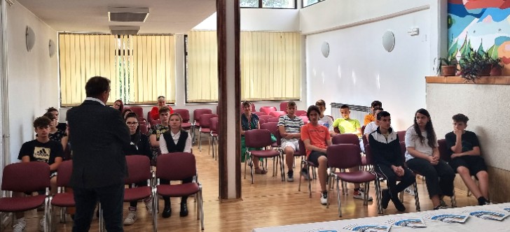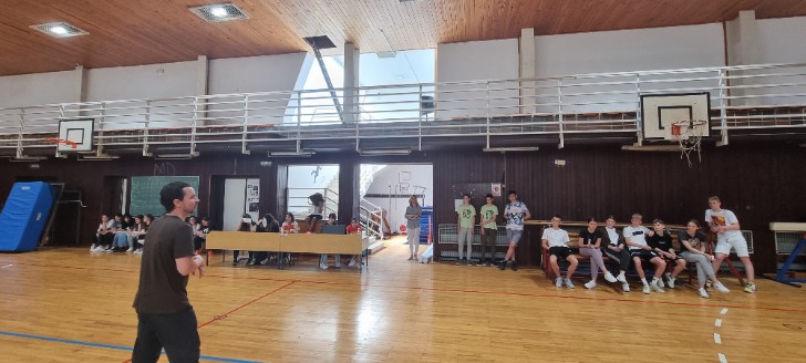 Učenici 1. e i 2. e razreda s profesorom Petrom Gračakovićem u školskoj su sportskoj dvorani predstavili dvoranu i sportske uspjehe te aktivnosti Školskoga sportskog kluba “Kamenjak”.