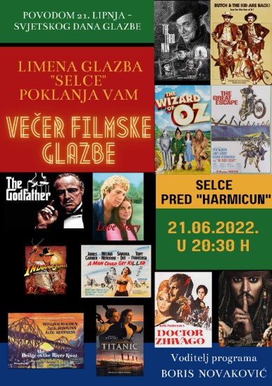 21.6. Selce – Harmica (Trg palih boraca) – Večer filmske glazbe – povodom Svjetskog dana glazbe