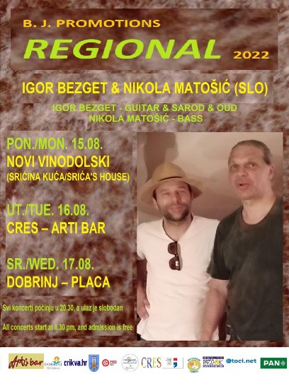 7. Regional 2022 se u ponedjeljak 15.8. nastavlja posljednjom glazbenom rundom i t trodnevnom mini turnejom slovenskog jazz/world music dvojca Igor Bezget (gitare, oud, sarod) & Nikola Matošić (kontrabas)