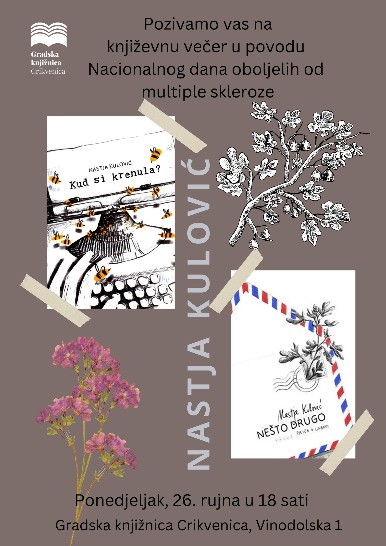 Gradska knjižnica Crikvenica ugostit će književnicu Nastju Kulović u povodu Nacionalnog dana oboljelih od multiple skleroze.