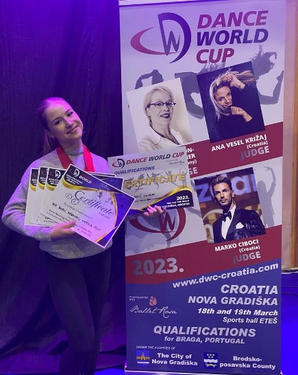 Naša Crikveničanka Ira Đerić Hasanac, članica Plesnog kluba “Dance Queen”, natjecala se u children kategoriji kao solistica u plesnim disciplinama ballet, show, jazz i contemporary modern te je osvojila je tri prva i jedno drugo mjesto. Zahvaljujući visokim bodovima u sve četiri discipline kvalificirala se za svjetsko prvenstvo koje će se ove godine održati od 30.6. do 8.7. u Portugalu. Odlukom sudaca proglašena je i ukupnom solo pobjednicom u svojoj kategoriji, čime je ostvarila i oslobođanje od plaćanja troškova kotizacija i pristojbi koje će za Iru snositi organizator Dance World Cup-a.