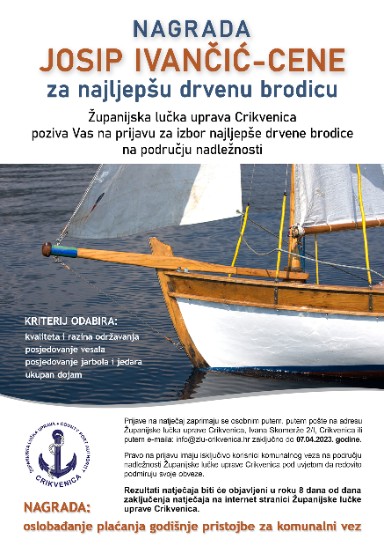 – Županijska lučka uprava Crikvenica iznimno je ponosna na drvena plovila u lukama pod svojim upravljanjem i pred nama je svake godine “slatka muka” da od nekoliko plovila odaberemo ono najljepše i na taj ponajprije simboličan način pomognemo vlasnicima drvenih plovila jer oni to svojim trudom i ljubavlju prema drvenoj brodogradnji itekako zaslužuju. Pozivam sve naše korisnike koji zadovoljavaju uvjete natječaja da se prijave. Svim prijaviteljima želim sreću i uspjeh u natjecanju i neka najljepša brodica pobijedi, ističe ravnatelj crikveničke lučke uprave Mario Kružić.