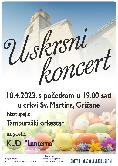 Pozivamo Vas na Uskrsni koncert KUD-a dr. Antun Barac u crkvi Sv. Martina u Grižanama koji će se održati 10. travnja 2023. godine s početkom u 19:00 sati.