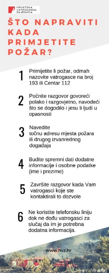U slučaju da primijetite požar, odmah nazovite vatrogasce na broj 193 ili Centar 112.