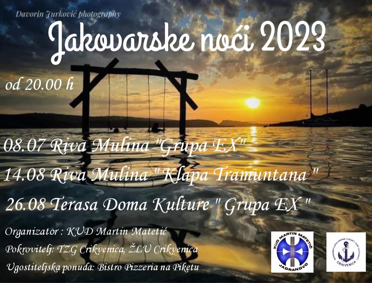 “Jakovarske noći” se održavaju na rivi Mulina u organizaciji KUD-a “Martin Matetić” i pod pokroviteljstvom TZG Crikvenice, a prva je na rasporedu ove subote 8. srpnja