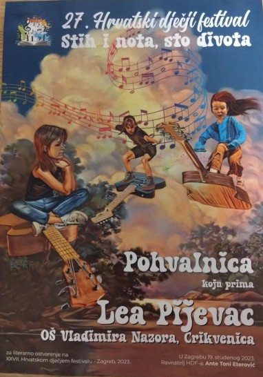 U pratnji mentorice i roditelja koji su Lei velika podrška, nagrađena učenica uživala je u festivalskom koncertu na kojemu je nastupilo 23 dječja zbora iz cijele Hrvatske. Organizatori Hrvatskog dječjeg festivala ističu kako se radi o jedinstvenom dječjem festivalu koji svake godine okuplja oko tisuću sudionika, pri čemu se kroz rad sa djecom i stimuliranje prezentacije njihovih talenata i kvaliteta potiču razvojne mogućnosti i utire put stvaranju budućih pjevača, skladatelja, slikara i pjesnika.