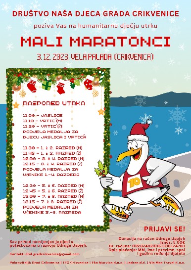 Društvo Naša djeca Grada Crikvenice organizira humanitarnu dječju utrku “Mali maratonci”.