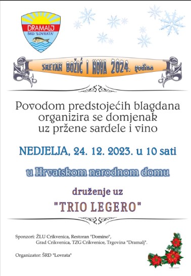 Badnjak provedite u jednome od četiriju mjesta Rivijere Crikvenica – Crikvenici, Selcu, Dramlju ili Jadranovu – gdje će biti „Ribi za seh“! I ove godine nas čeka tradicionalno druženje uz podjelu ribica, a od 12 sati u Preradovićevoj ulici u Crikvenici zasvirat će glazbeni sastav „Allegro“.
