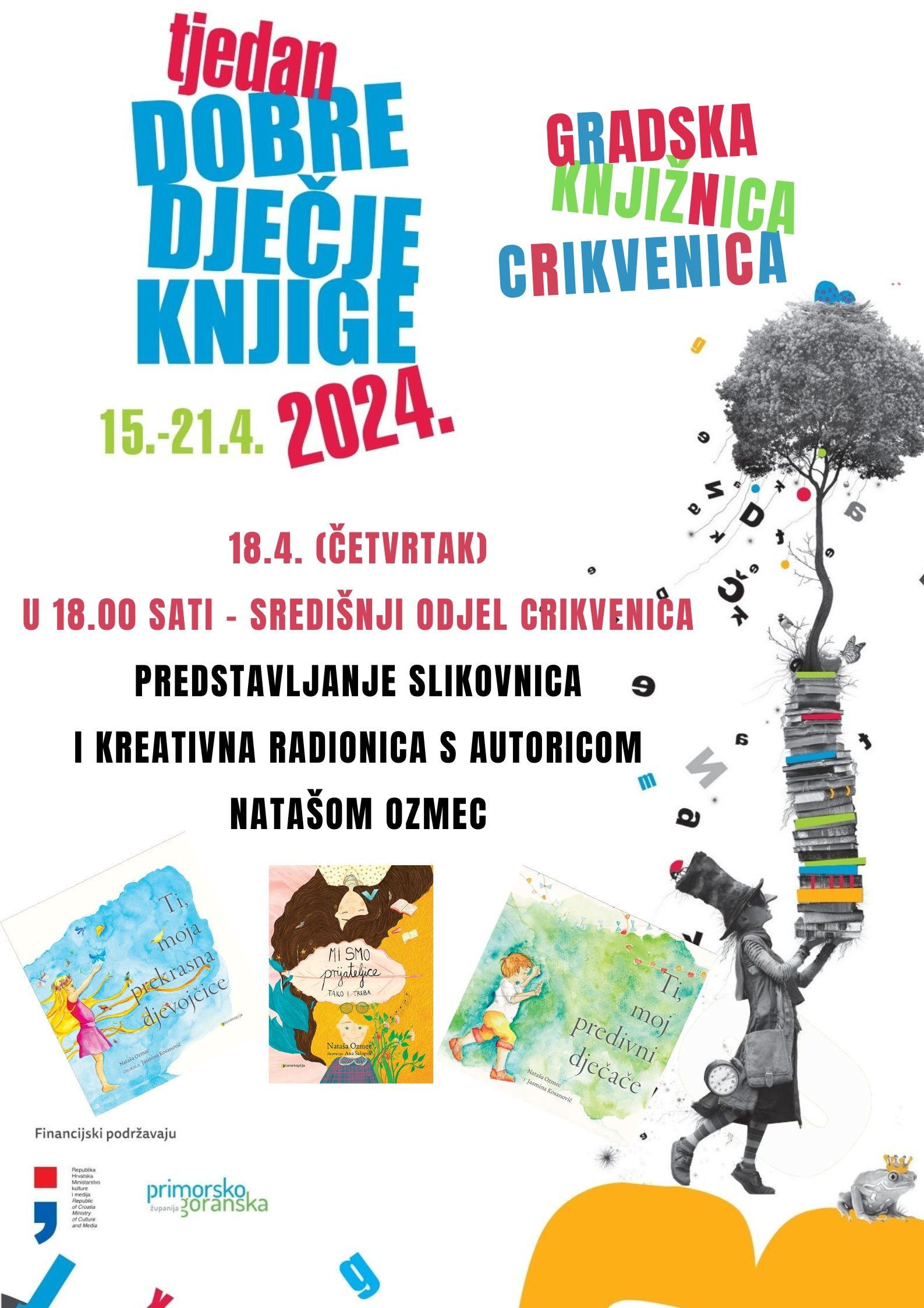 U sklopu Tjedna dobre dječje knjige Gradska knjižnica Crikvenica u četvrtak (18.4.) organizira predstavljanje slikovnica i kreativnu radionicu s autoricom Natašom Ozmec.