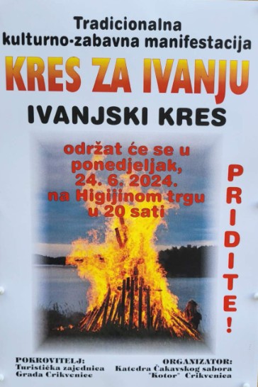 U ponedjeljak, 24. lipnja 2024. s početkom u 20:00 sati na Higijinom trgu u Crikvenici održat će se tradicionalna kulturno-zabavna manifestacija „Kres za Ivanju“.