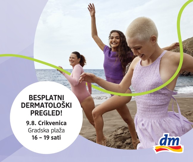 U petak 9. kolovoza, na Gradskoj plaži u Crikvenici održat će se besplatni dermatološki pregledi u sklopu dm-ove inicijative „Zaštiti se…i uživaj na suncu“, čiji je cilj educirati što veći broj ljudi o zaštiti od UV zračenja te ih potaknuti na preventivne preglede kože. Od 16:00 do 19:00 sati svi zainteresirani građani, bez prethodne prijave, mogu pristupiti besplatnom pregledu kože.