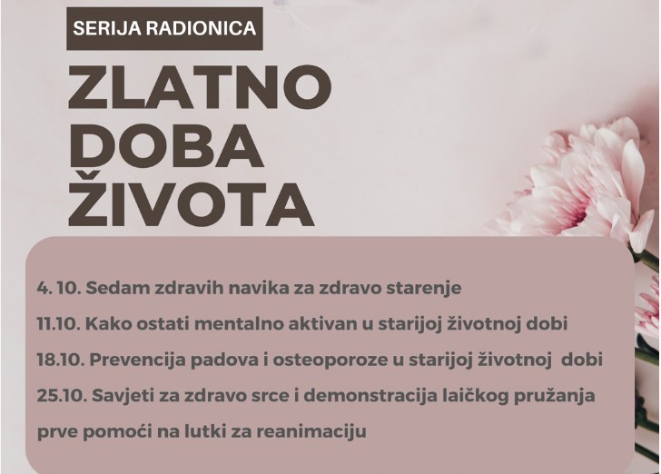 Nastavni zavod za javno zdravstvo Primorsko-goranske županije i Grad Crikvenica u listopadu organiziraju seriju radionica pod nazivom „Zlatno doba života“ namijenjenih osobama starije životne dobi s područja Grada Crikvenice.