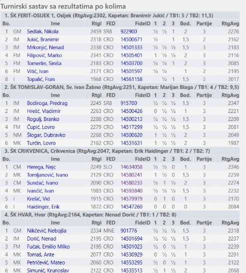 Za ekipu Šahovskog kluba “Crikvenica” su igrali: Nejc Herega, Ivano Tomljanović, Ivano Sundać, Ivan Ivančić, Vid Krešić i Erik Haidinger.