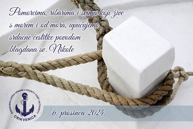Županijska lučka uprava Crikvenica svima koji žive s morem i od mora čestita blagdan sv. Nikole