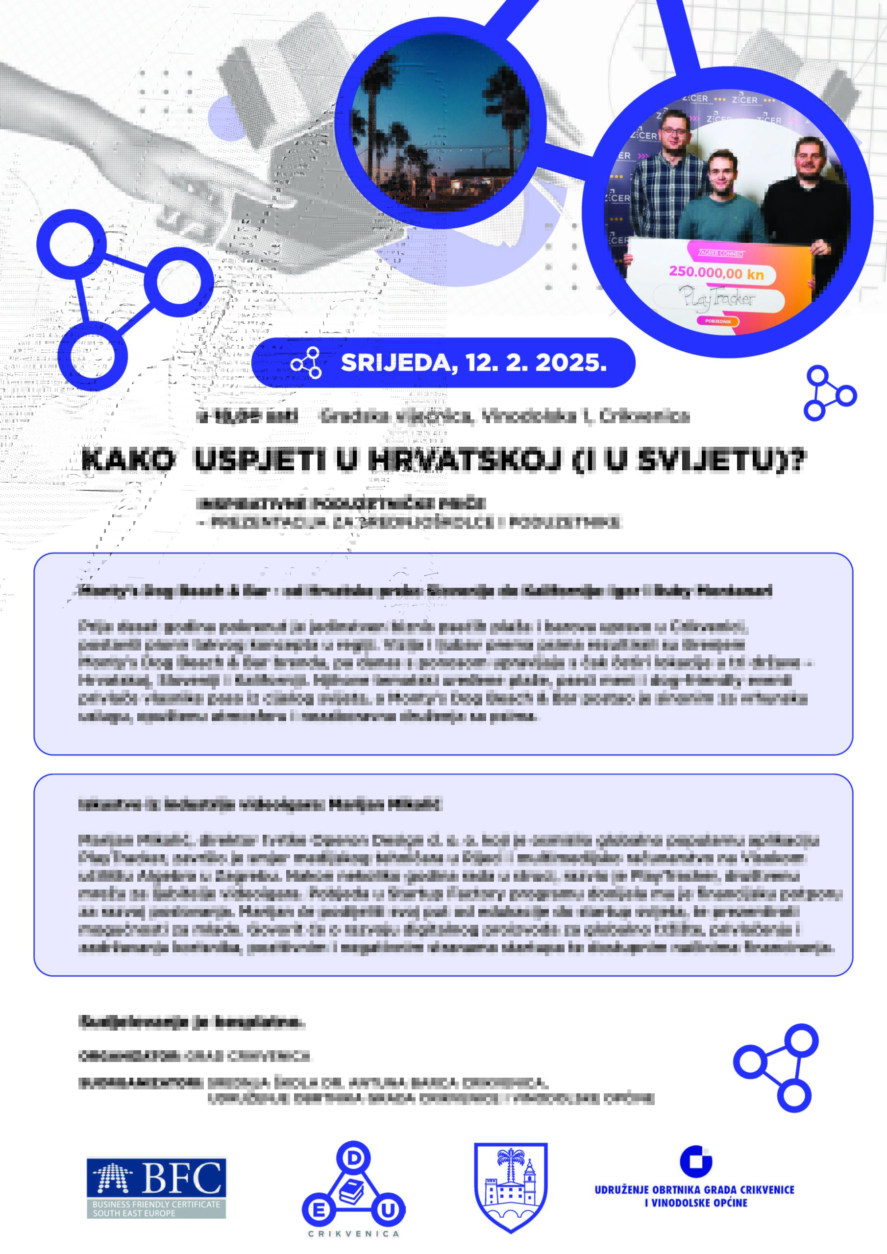 U srijedu, 12. veljače, u Gradskoj vijećnici u Crikvenici s početkom u 18 sati, svoje inspirativne poduzetničke priče ispričat će Igor i Ruby Montanari te Marijan Mikolić