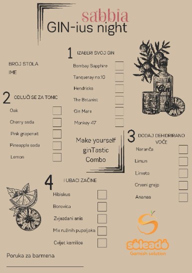 – Sami birate svoj gin, tonik, dehidrirano voće i začine, a naši barmeni će od vašeg odabira napraviti savršeni koktel. Dođi, eksperimentiraj i pokaži svoj gin-ius! – poručuju iz “Sabbije”.