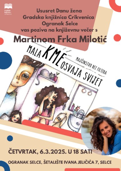Gradska knjižnica Crikvenica – Ogranak Selce poziva vas uoči Dana žena na predstavljanje knjige Martine Frka Milotić „Mala Kme osvaja svijet“ koje će se održati u četvrtak, 6. ožujka u selačkom ogranku, Šetalište I. Jeličića 7.