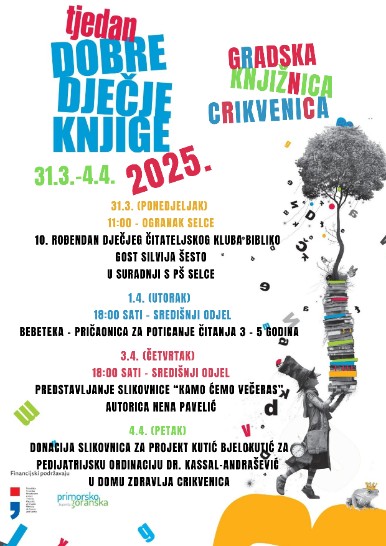 Gradska knjižnica Crikvenica pripremila je i ove godine mnoštvo događanja uz Tjedan dobre dječje knjige u suradnji s Gradskom knjižnicom Rijeka. Tjedan otvaraju u ponedjeljak, 31. ožujka proslavom desetog rođendana Dječjeg čitateljskog kluba Bibliko u suradnji s PŠ Selce OŠ Zvonka Cara, a u goste stiže popularna autorica za djecu Silvija Šesto.