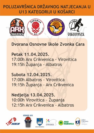 Košarkaški klub Arx Crikvenica bit će od petka 11. do nedjelje 13.4. u sportskoj dvorani Osnovne škole Zvonka Cara domaćin poluzavršnice Državnog prvenstva košarkašica do 13 godina (U13).