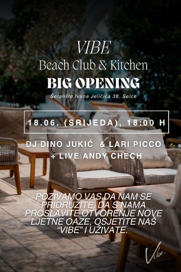 U Selcu na adresi Šetalište Ivana Jeličića 38 uz gradsku plažu “Poli Mora” prošloga petka svoja vrata otvorio je “Vibe” beach club & kitchen.