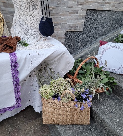 Izložba Udruge umirovljenika pretvorila je gradske kutke u galerije topline. Pletene torbe, čipkasti stolnjaci i ukrasne tkanine krasile su kamene stepenice. Torba puna cvijeća u središtu jednog postava privukla je pažnju prolaznika — simbol ljepote jednostavnosti.