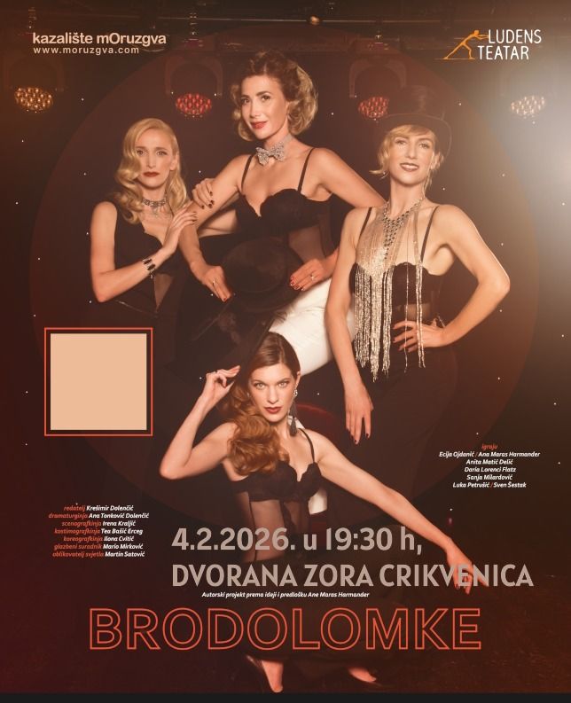 U srijedu, 4. veljače 2026, s početkom u 19:30 sati, u Dvorani Zora gostuje predstava “Brodolomke” u režiji Krešimira Dolenčića, te izvedbi Kazališta Moruzgva.