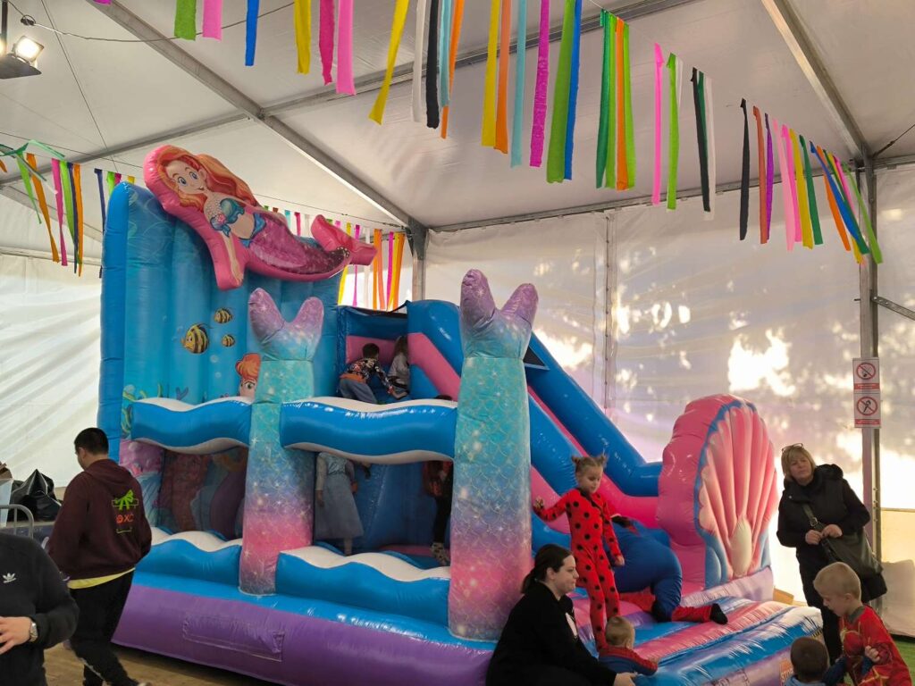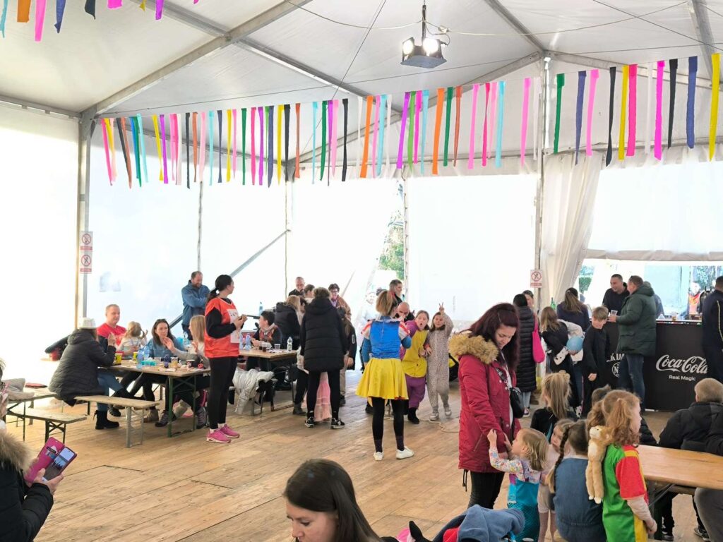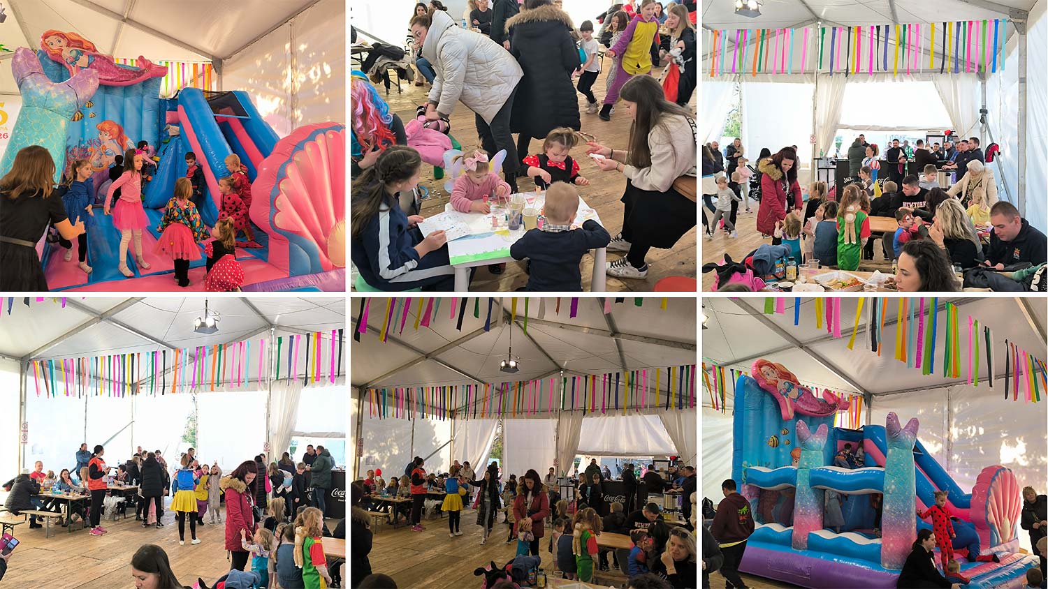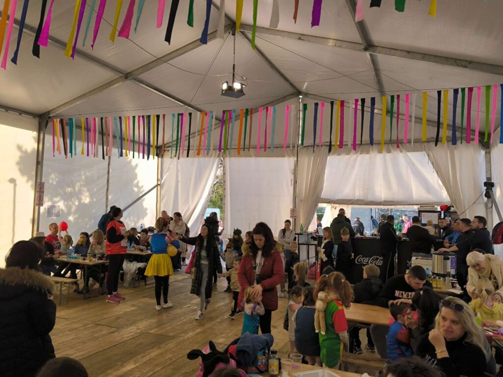 Maškarano druženje se odvijalo u šatoru postavljenom na Dugi, gdje je za djecu bio osiguran napuhanac kao jedan od atraktivnih sadržaja. Program su vodili animatori koji su organizirali i provodili različite igre, prilagođene dječjem uzrastu, uz stalnu interakciju s malim sudionicima pod maskama.