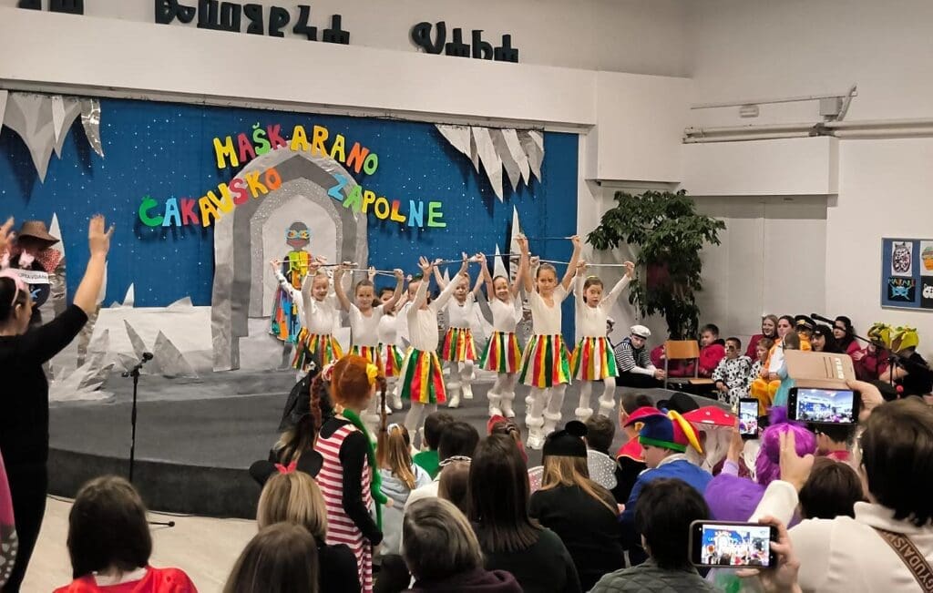 U Osnovnoj školi Zvonka Cara održano je tradicionalno Čakavsko maškarano zapolne, priredba koja kroz dječje nastupe sustavno njeguje čakavski govor i lokalnu karnevalsku baštinu. Školom su odjekivali smijeh, zvuk bubnja i zvonaca te stihovi izgovoreni na domaćoj besedi.