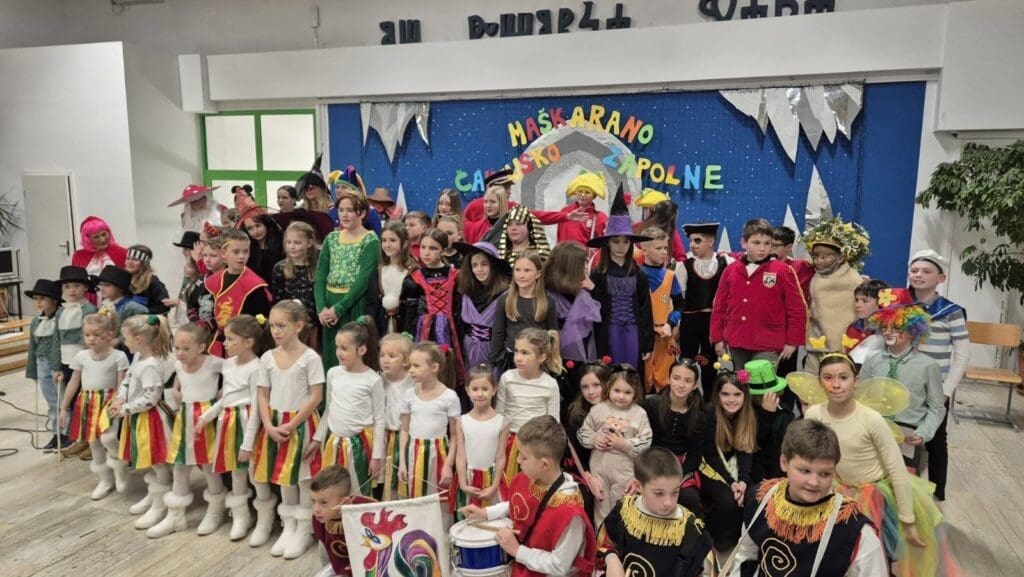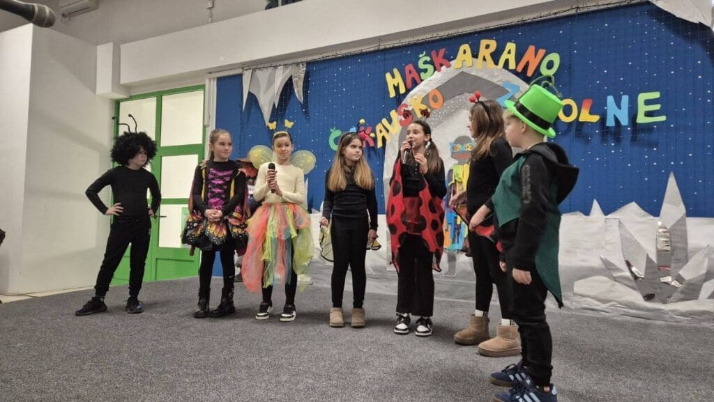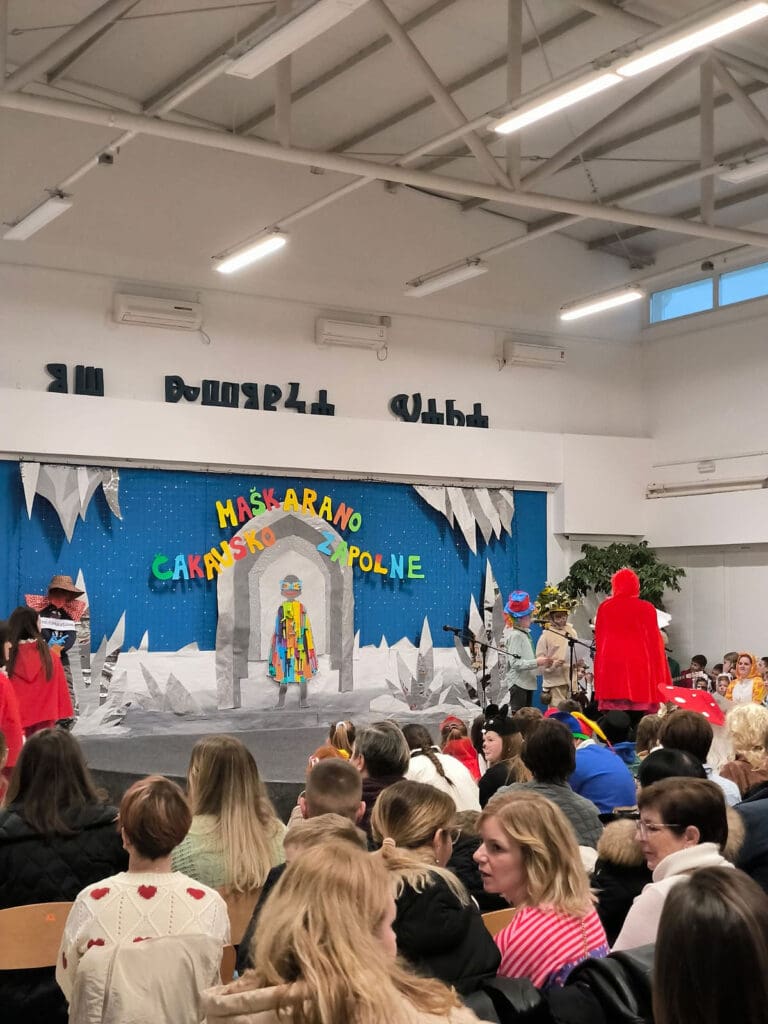 U Osnovnoj školi Zvonka Cara održano je tradicionalno Čakavsko maškarano zapolne, priredba koja kroz dječje nastupe sustavno njeguje čakavski govor i lokalnu karnevalsku baštinu. Školom su odjekivali smijeh, zvuk bubnja i zvonaca te stihovi izgovoreni na domaćoj besedi.