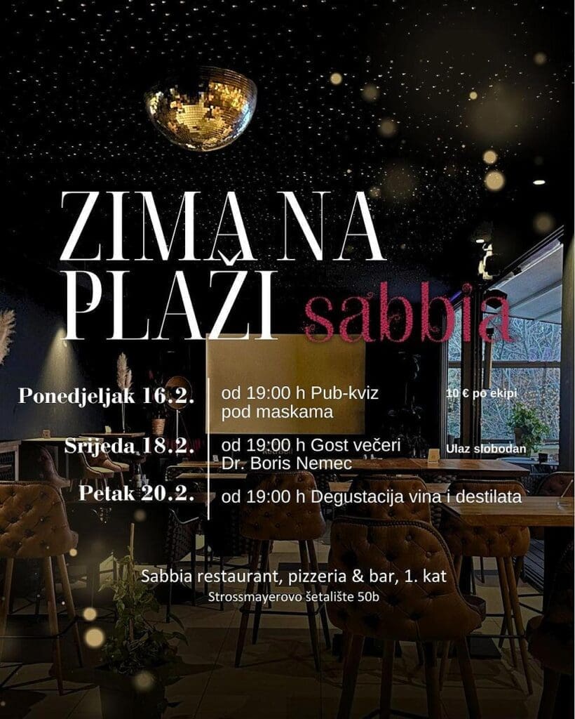 Ovoga tjedna od 19:00 sati družimo se na prvom katu Sabbije gdje se nastavlja program u sklopu zimskih događanja – “Zima na plaži”.