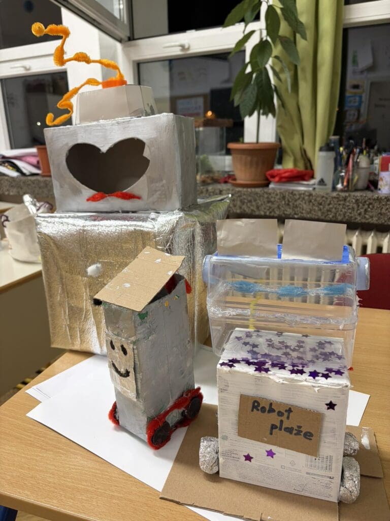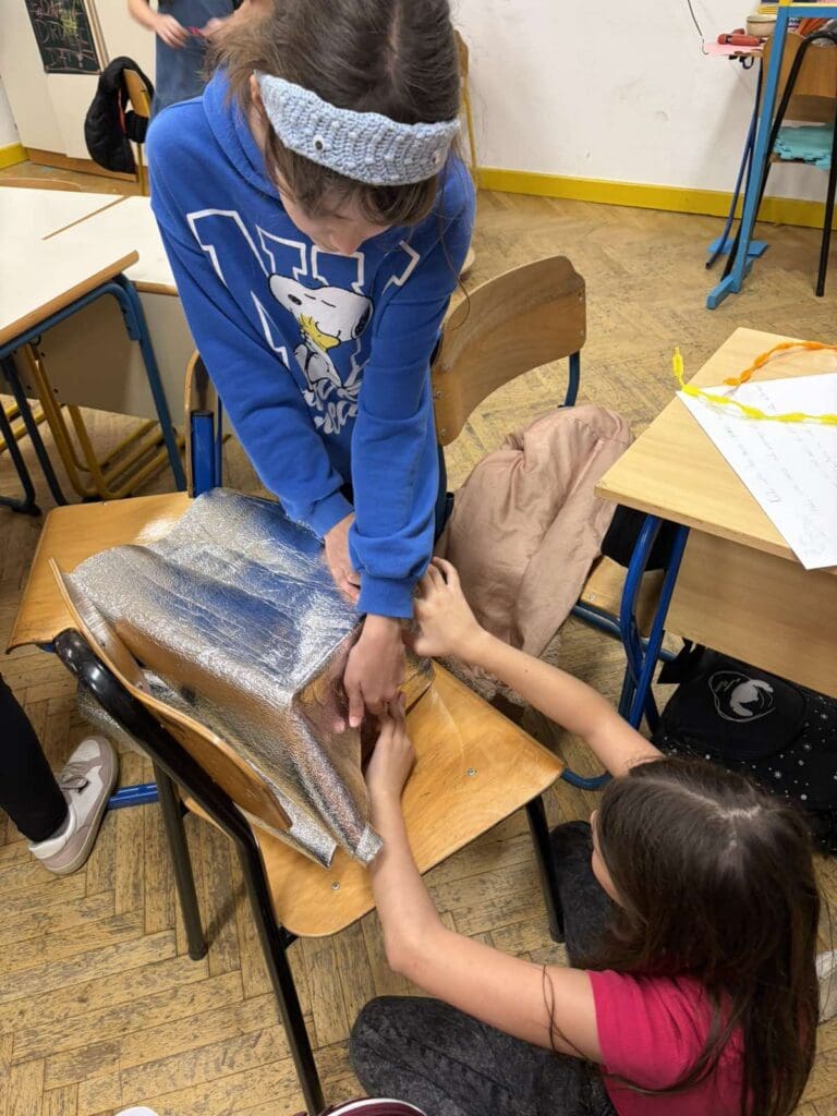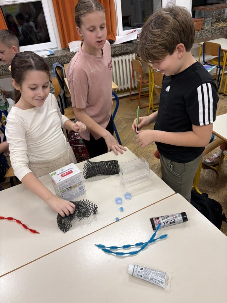 U nastavku su podijeljeni u skupine sa zadatkom osmišljavanja eko-izuma koji bi mogao pomoći gradu. Svaka skupina definirala je naziv, funkciju i način rada svojeg izuma, a potom je izradila model koristeći otpadne materijale.