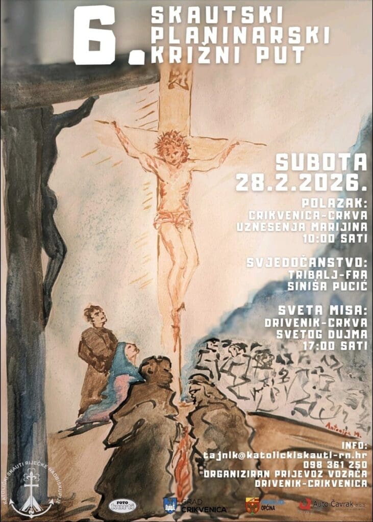 U subotu, 28. veljače 2026. godine, u organizaciji Katoličkih skauta Riječke nadbiskupije, održat će se 6. Skautski planinarski križni put na relaciji Crikvenica – Tribalj – Drivenik.